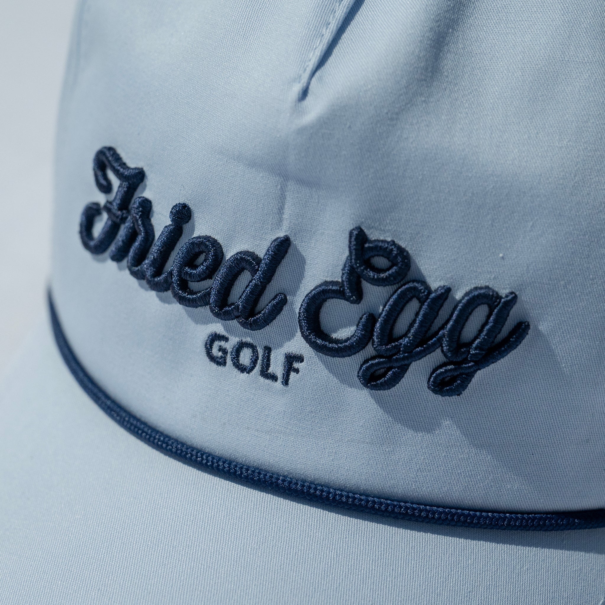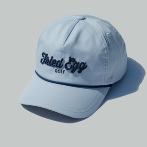 The American Needle lightweight rope hat features an embroidered Fried Egg Golf logo on a cotton 5-Panel, semi-structured crown & mesh flip-up stay. A curved brim visor with nylon rope across and adjustable velcro closure complete this classic look.