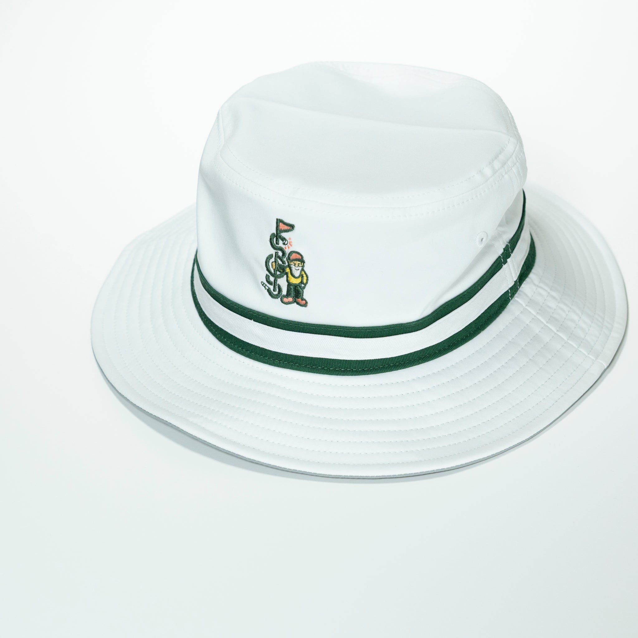 American Needle's tech bucket hat is made with a poly spandex blend for extra breathability. A white and green ribbon compliments the embroidered SGS Gnome logo for the perfect retro look.