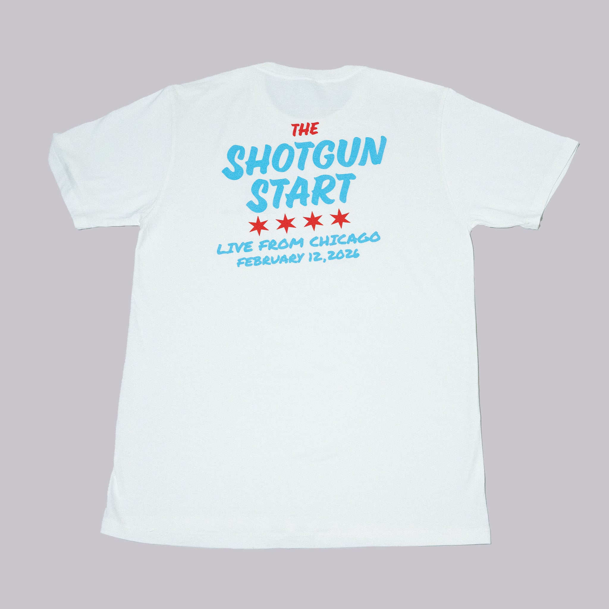 Special edition t-shirt commemorating The Shotgun Start Live Show in Chicago.